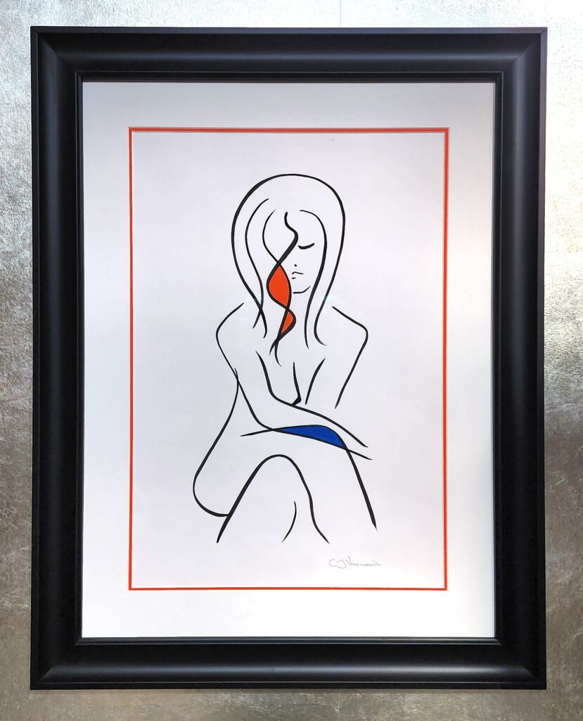 Craig Vucinovich is an engineer by day, creating art in his spare time without the expectation of displaying it. His works rely on confident line and evocative curves to walk the line between mathematics and expressionism. His figures are reminiscent of the minimalist works of David Cantu or Pablo Picasso, with a movement and style all his own. When others discovered Vucinovich’s cache of artworks they insisted he share them with the world, so this will be his first gallery showing; given the response we have already received, it will likely not be his last.